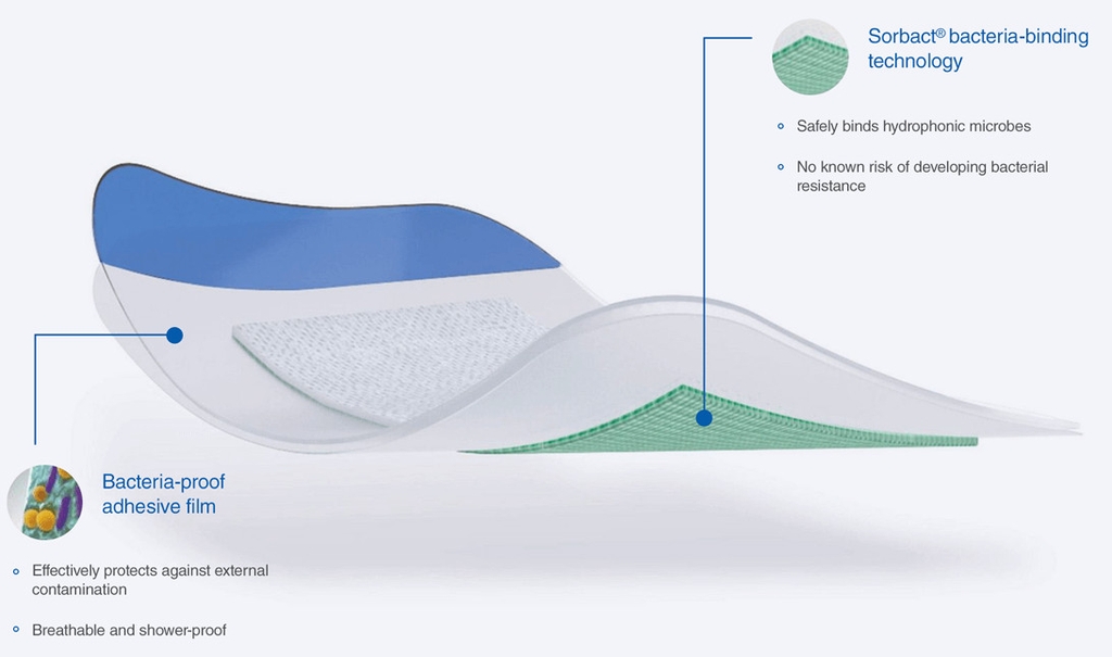 Với sự cải tiến vượt trội về chất lượng sản phẩm so với Leukomed T, Leukomed Sorbact với công nghệ DACC, tương tác kỵ nước, hấp dẫn vi khuẩn và nấm, không tiêu diệt chúng nên không tạo ra nội độc tố.Kìm hãm sự phát triển của vi khuẩn và nấm.Mỗi lần thay băng là một lần làm sạch vết thương một cách tự nhiên và an toàn nhất.