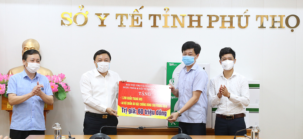 Lãnh đạo Sở Y tế tiếp nhận số vật tư y tế gồm 1.200 khẩu trang N95 và 50 bộ quần áo đặc chủng phòng, chống dịch do Công ty CP Dược phẩm và Đầu tư quốc tế An Phát và Báo Phú Thọ trao tặng.